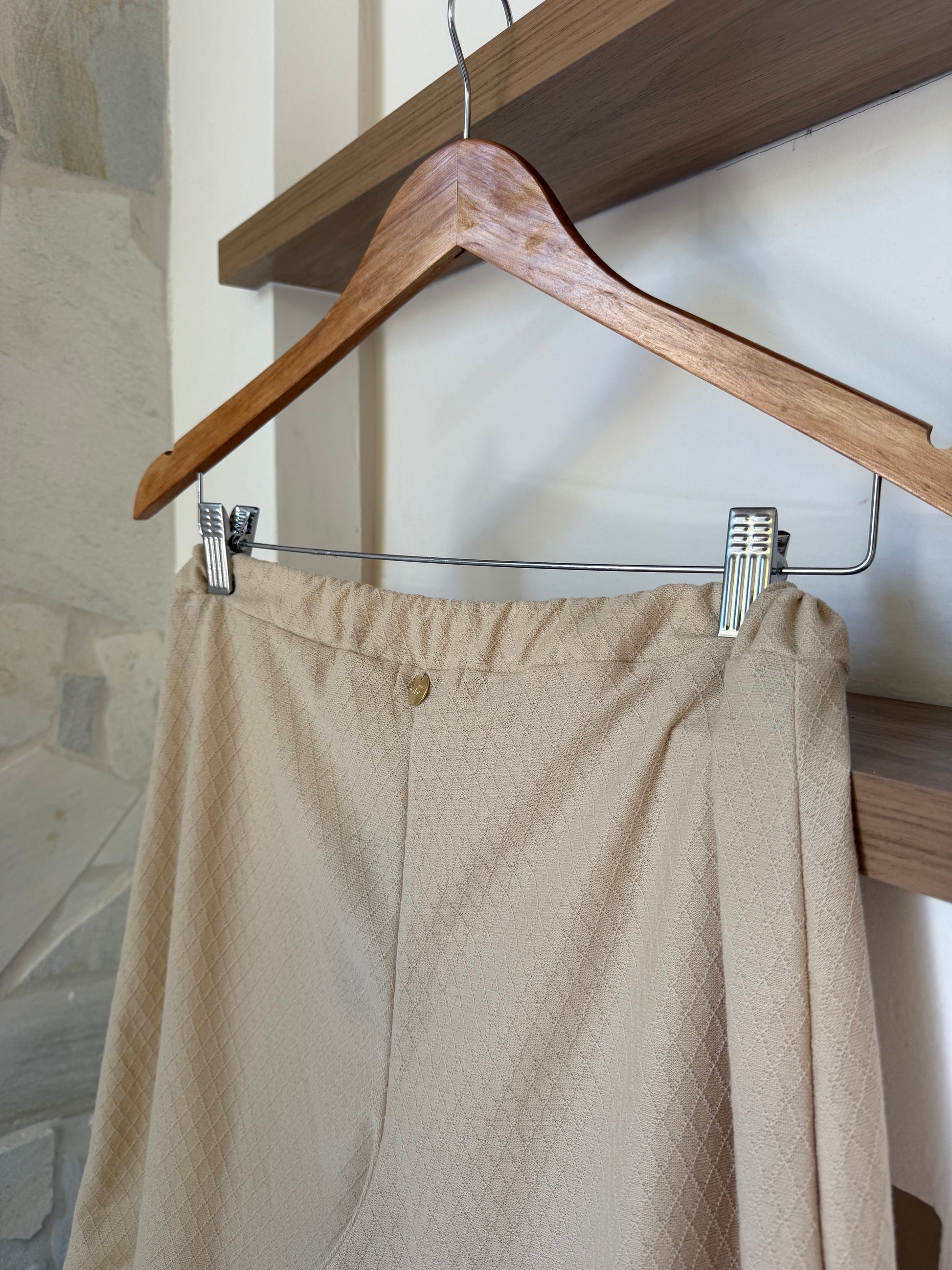 Com cintura confortável e acabamento minimalista, é perfeita para criar conjuntos harmônicos ou ser usada separadamente em diferentes propostas, mantendo sempre uma estética clean e atemporal.